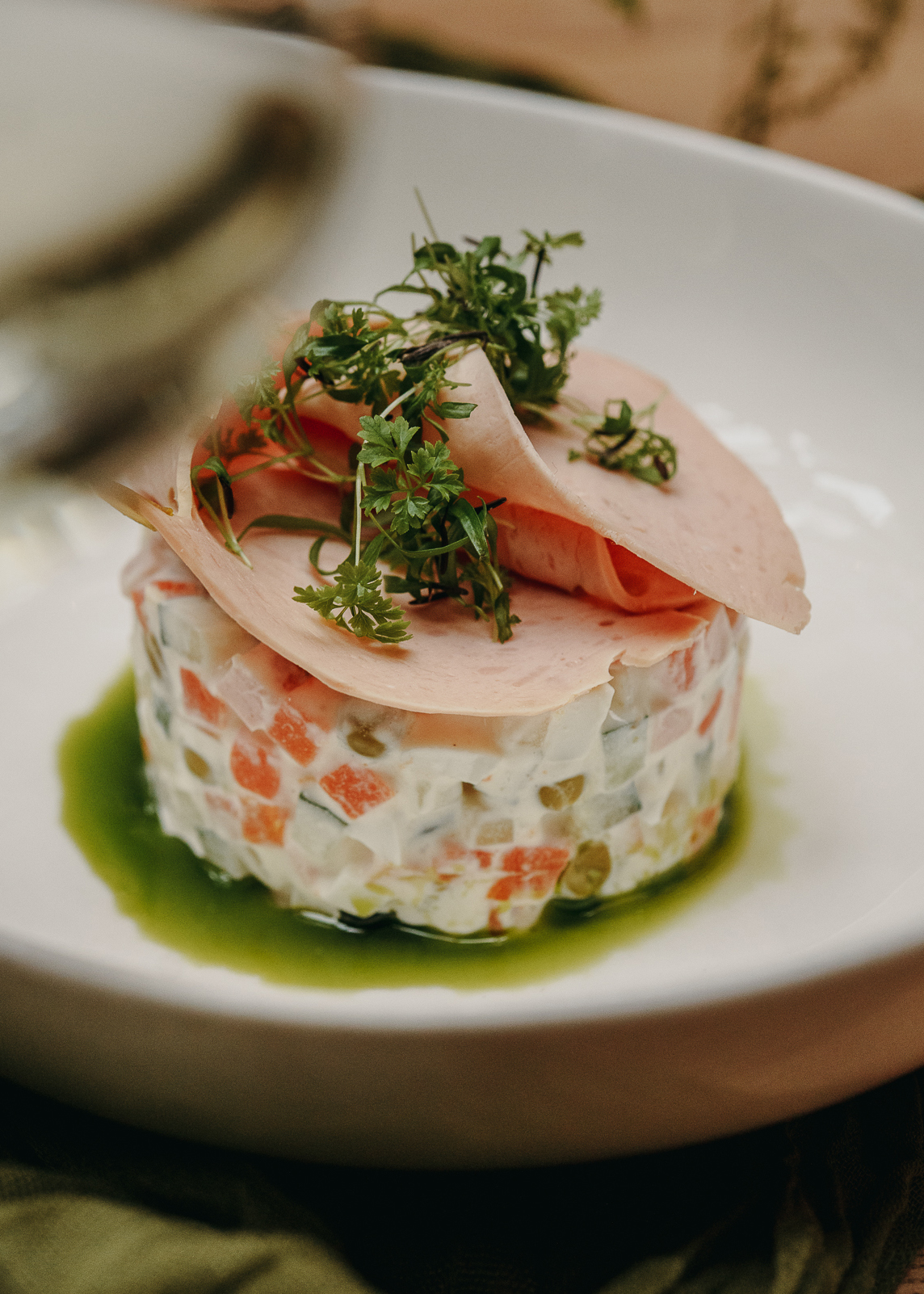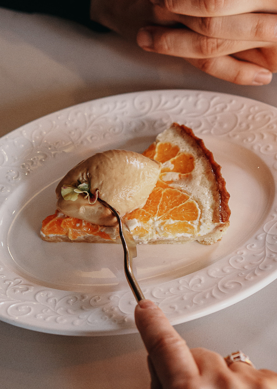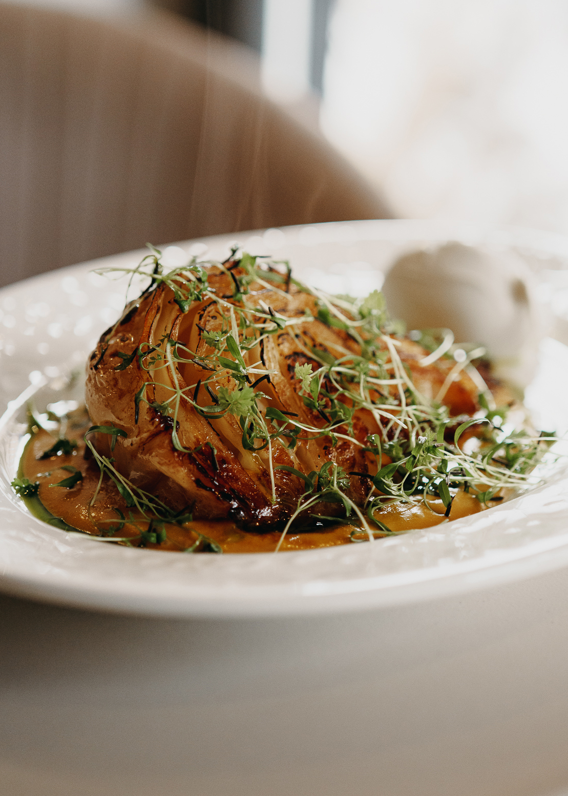 Стейк из молодой капусты с морковным муссом и сыром Шевр
