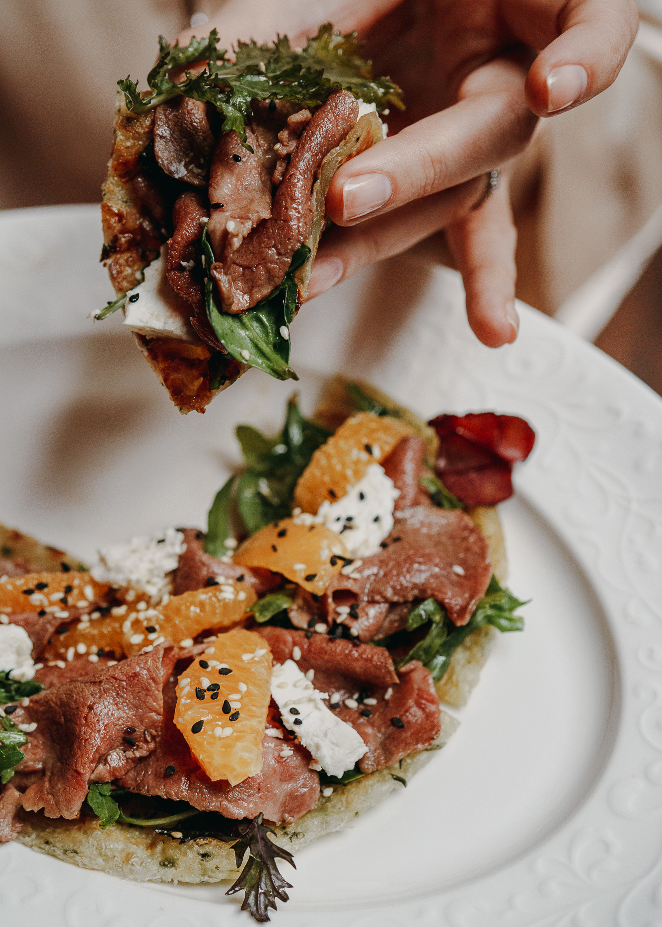 Роти с мраморной говядиной "Денвер", фетой и мандарином